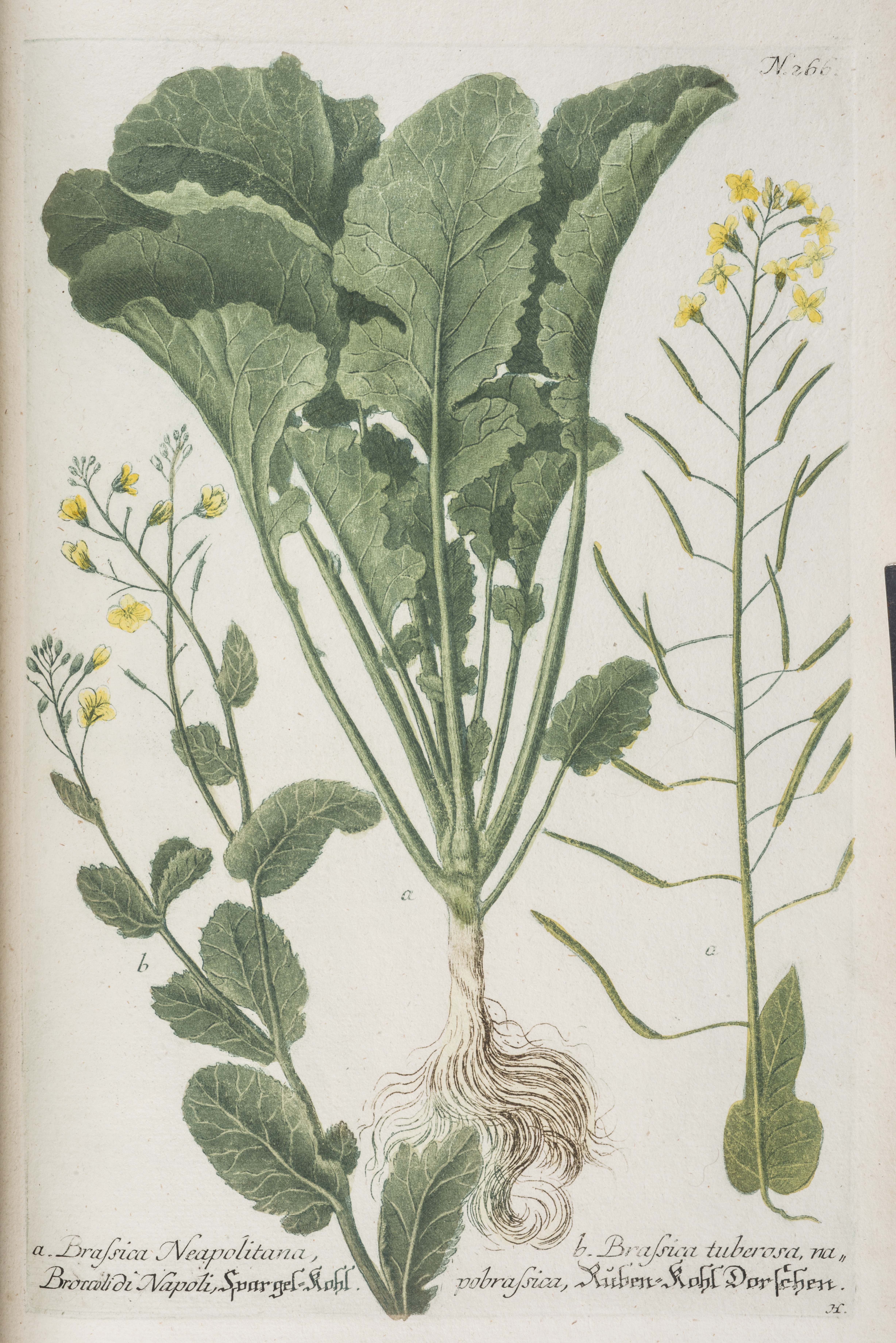 The Brassicas in this image (neapolitana and tuberosa) were printed in the late 1730s. They’re taken from a Dutch edition of Phytanthoza Iconographia by Weinmann, an apothecary whose interest in botany led him to create his own botanical garden in Regensberg in Bavaria.