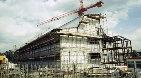 In March 1990 the ‘Cambridge Laboratory’ joined the John Innes Institute and the Sainsbury Laboratory on the Colney site in Norwich. This represented the non-privatised arm of the former Plant Breeding Institute, Cambridge, which had been divided up and sold to Unilever in 1987. Their new three-storey building opened with 120 permanent staff, plus visiting scientists, postdoctoral fellows and research students. Special glasshouses, and many other facilities, including a large seed store to hold the Plant Breeding Institute’s nationally important collection of seeds, were also built to replicate the facilities left in Cambridge. Crop science was organised into three new departments: ‘Cereals Research’, ‘Brassica and Oil Seeds Research’, and ‘Molecular Genetics’. This broadened the research base at Norwich to cover the major arable crops, with basic and strategic research using model plants to study genes that regulate key crop traits.