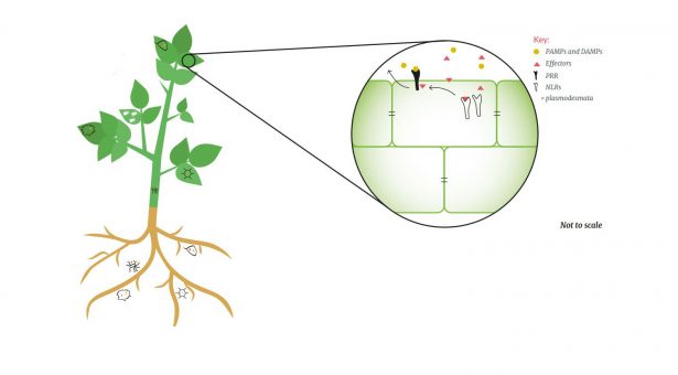 Unlike us, plants lack a centralised immune system with special cells to fight disease. In plants, every cell must defend itself. Here are some of the microorganisms which plants must recognise alongside a simplified model of the current understanding of plant immunity.