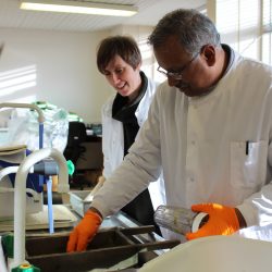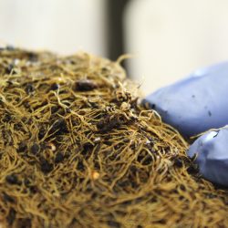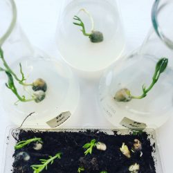 Captivated by this remarkable plant, Caroline set to work using plant material leftover from experiments, in close collaboration with Anne and Abhi. Previously unaware of grass pea, Caroline has found that “the more research that I’ve done and the more I’ve looked at the plant and spoken to Anne and Abhi, the more I’ve learnt”.