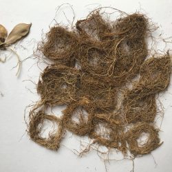 Towards the end of 2019 textile artist and M.A. Textile Design student on the course at Norwich University of the Arts, Caroline Hyde-Brown, inspired by artists such as Diane Scherer who uses roots in fashion, was looking to develop using plants in her practice. Caroline met with Dr Anne Edwards, who works on grass pea (Lathyrus sativus) and there sparked the beginning of their collaboration.