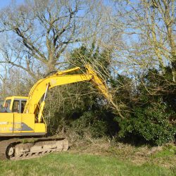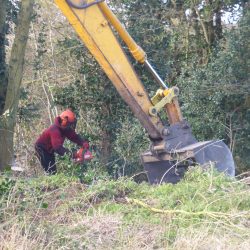 Anne knew Andy Hind who was coordinating restoration in the Norfolk Ponds Project, so asked him to visit the Church Farm ponds that week. Andy felt they were ideal for restoration and gave a quotation to cut out overhanging bushes and trees and to get in ‘Dom the Dig’ with his specialised long-arm digger to dredge the ponds and drag out the fallen trees.