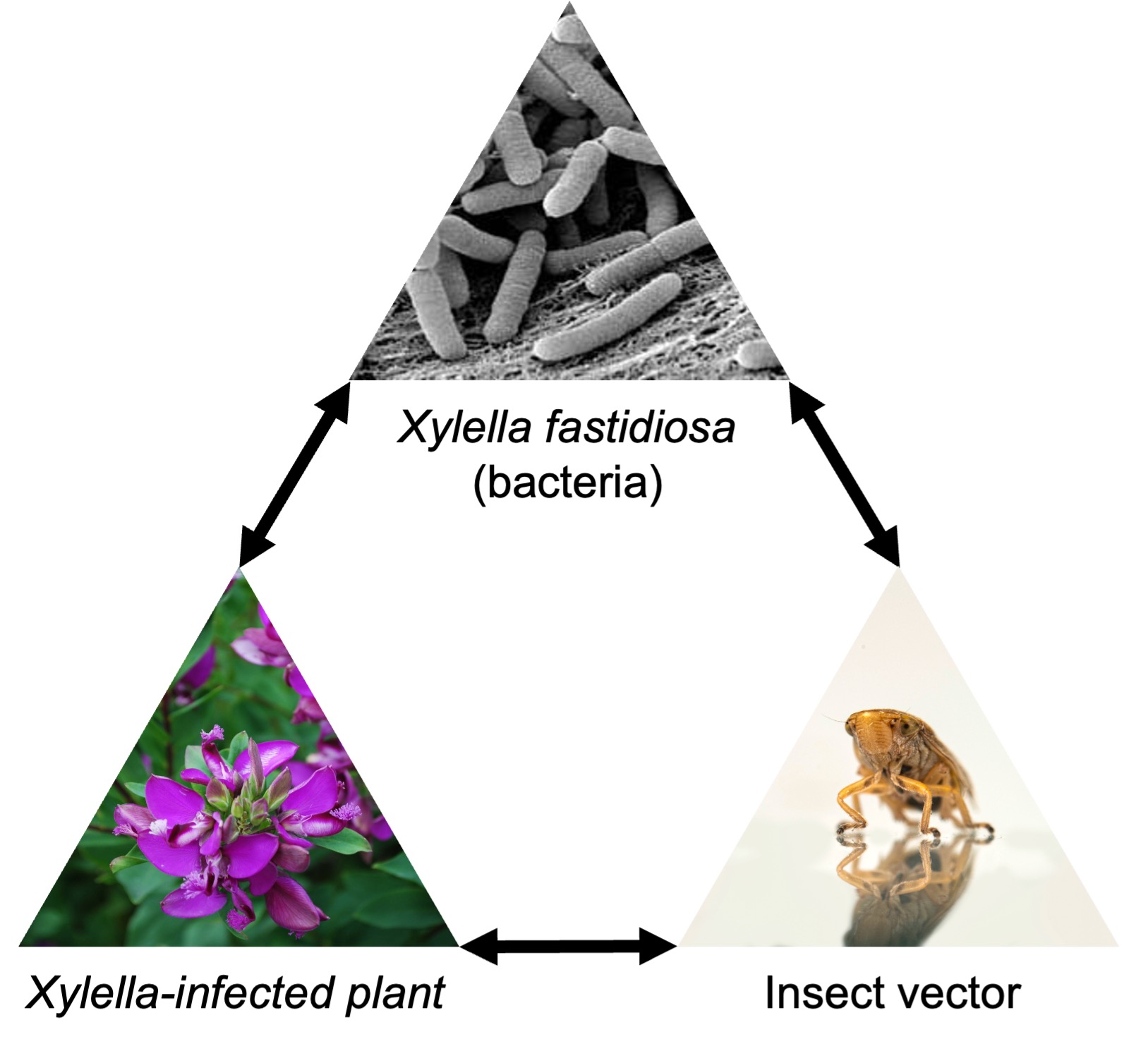 Xylella fastidiosa is a bacterial disease of plants, it is transmitted by insects to host plants.