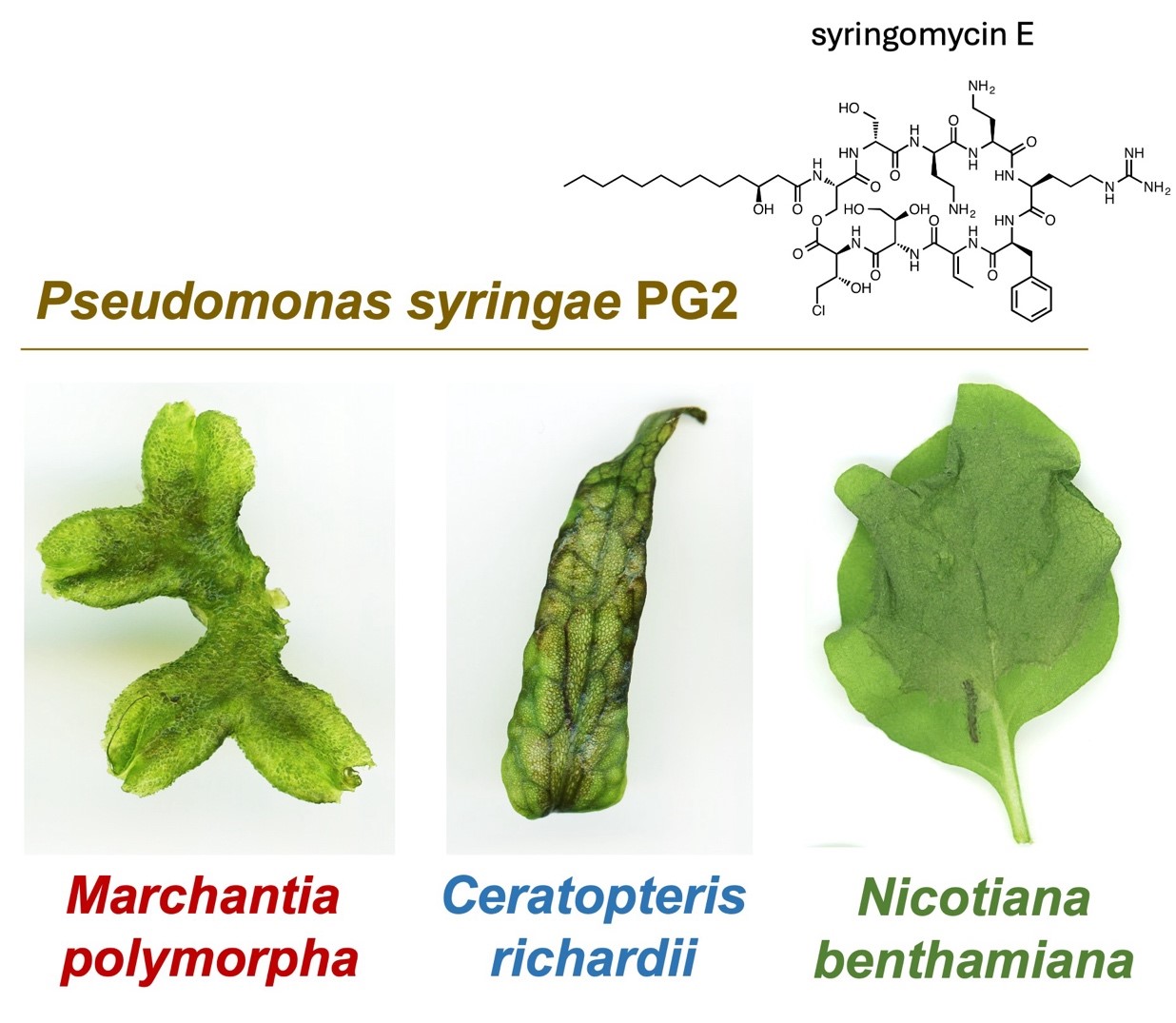 We’ve taken a comparative evolutionary approach to understand how the bacterial pathogen Pseudomonas syringae infects distantly related plants. By screening diverse P. syringae pathovars, we identified broad host range isolates causing significant disease in the liverwort Marchantia polymorpha, the fern Ceratopteris richardii, and the flowering plant Nicotiana benthamiana. Broad host P. syringae belonging to the phylogroup 2 clade of the Psy species complex are particularly virulent in non-flowering plants, relying on a combination of type-III secreted effector proteins and the lipopeptide phytotoxin syringomycin. Further investigation into syringomycin activity demonstrates a role in promoting tissue necrosis that enhances in planta bacterial growth of toxin-deficient strains. Our research reveals a key role for the lipopeptide syringomycin in promoting Pseudomonas colonization, which works in concert with effectors to antagonize an exceptionally wide spectrum of land plants. Further research interrogating the interplay between toxins and effectors is required to understand the highly effective virulence program of broad host P. syringae.