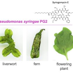 The results showed that syringomycin was toxic in non-flowering plants (represented in this study by model species of a liverwort and fern), causing tissue death and activation of stress-related genes.