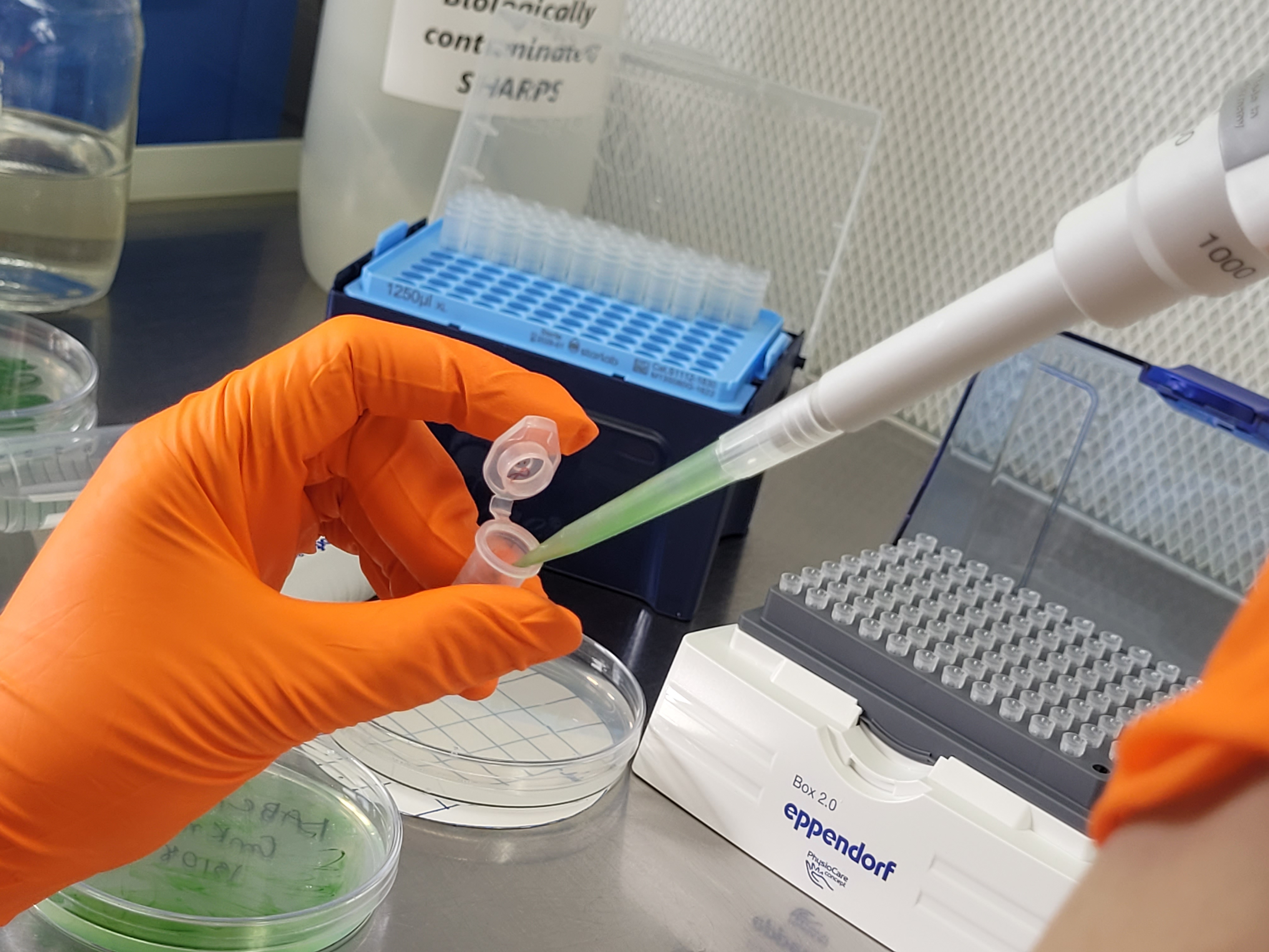 Dr Luisa Jabbur with cyanobacteria in the lab