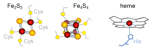 Iron is an important catalyst for many enzyme reactions. The main types of catalytic iron centres (or cofactors) are heme, iron-sulfur (Fe-S) clusters and di-iron or mononuclear iron. In plants, Fe-S clusters are the most abundant (Przybyla-Toscano et al., 2021. Gene atlas of iron-containing proteins in Arabidopsis thaliana, doi: 10.1111/tpj.15154)