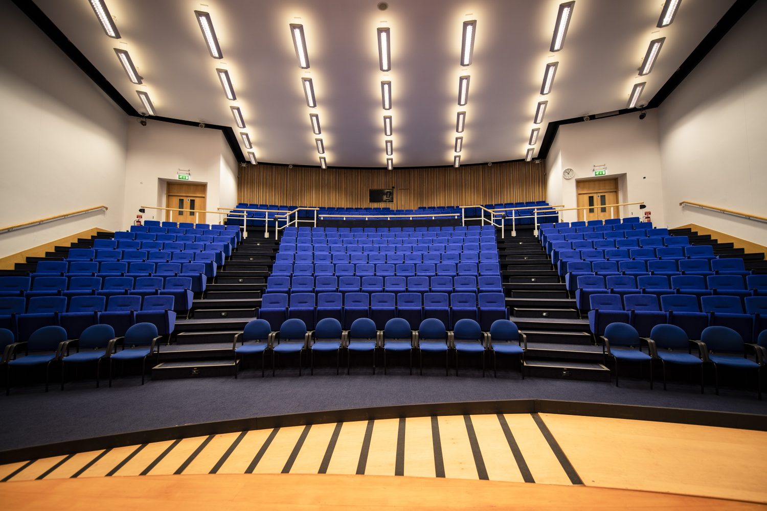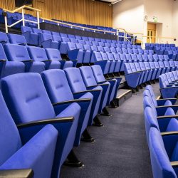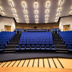 The Auditorium boasts 320 seats in tiered rows offering an uninterrupted view of the stage from all areas. The front row of chairs is freely removable to allow for wheelchairs and there is a bespoke ramp in place onto the stage.